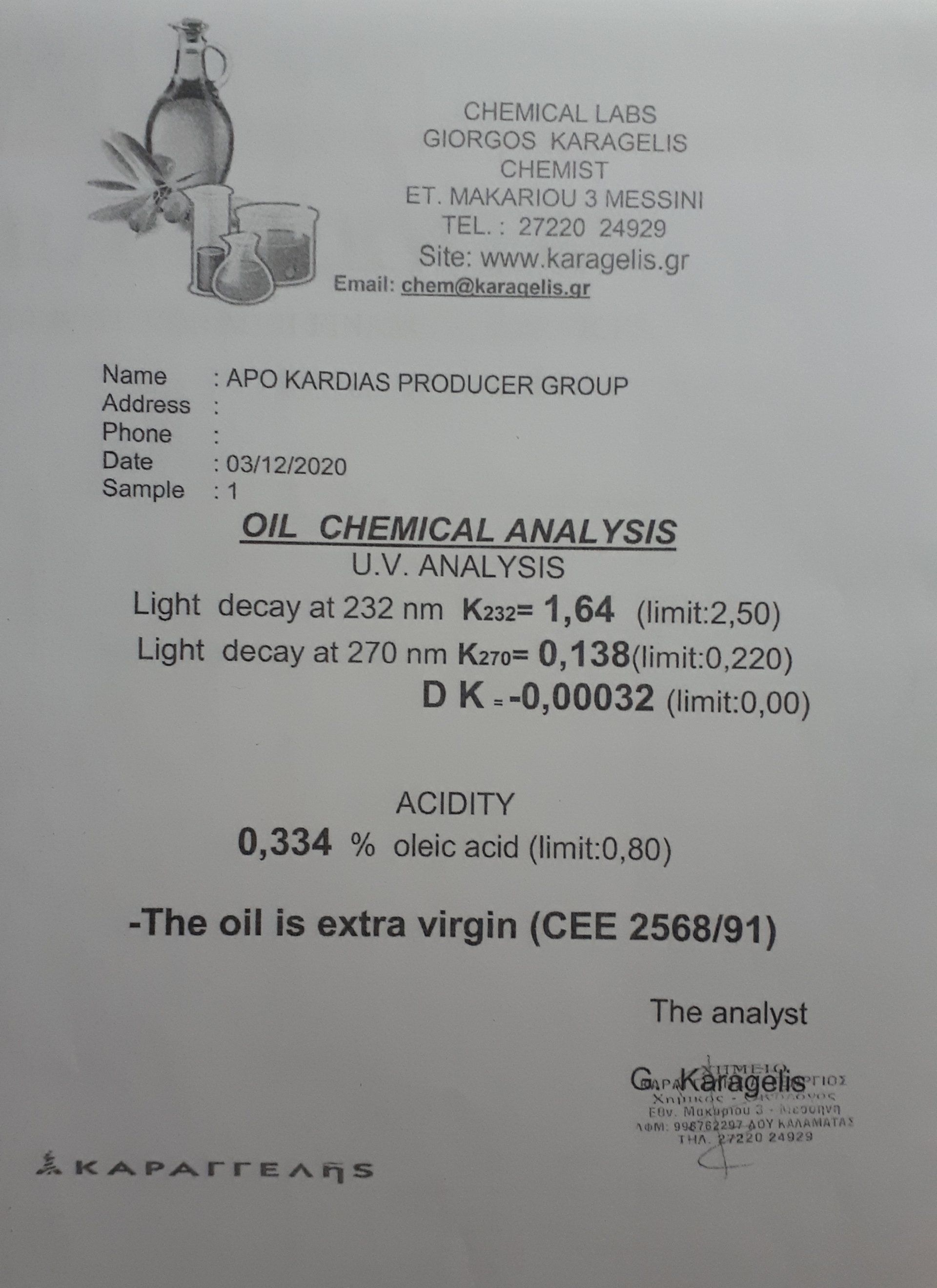 Diese Werte stehen im Zusammenhang mit dem Reifegrad der Oliven sowie mit der Sorgfalt, mit der die Oliven bei der Ernte und in der Ölmühle behandelt wurden.