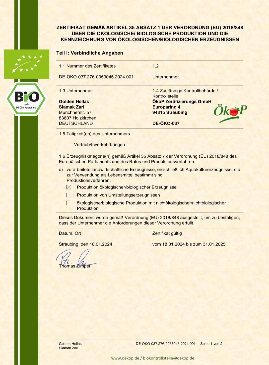 EU-Kontroll-Nr. DE-BY-037-89467-H